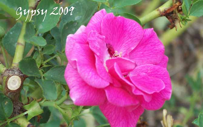 January 2006- I fell in love with the picture and name. Right now it looks half dead, but after pruning we'll see how she does. She has to stand up to a lot of competetion in this bed.
